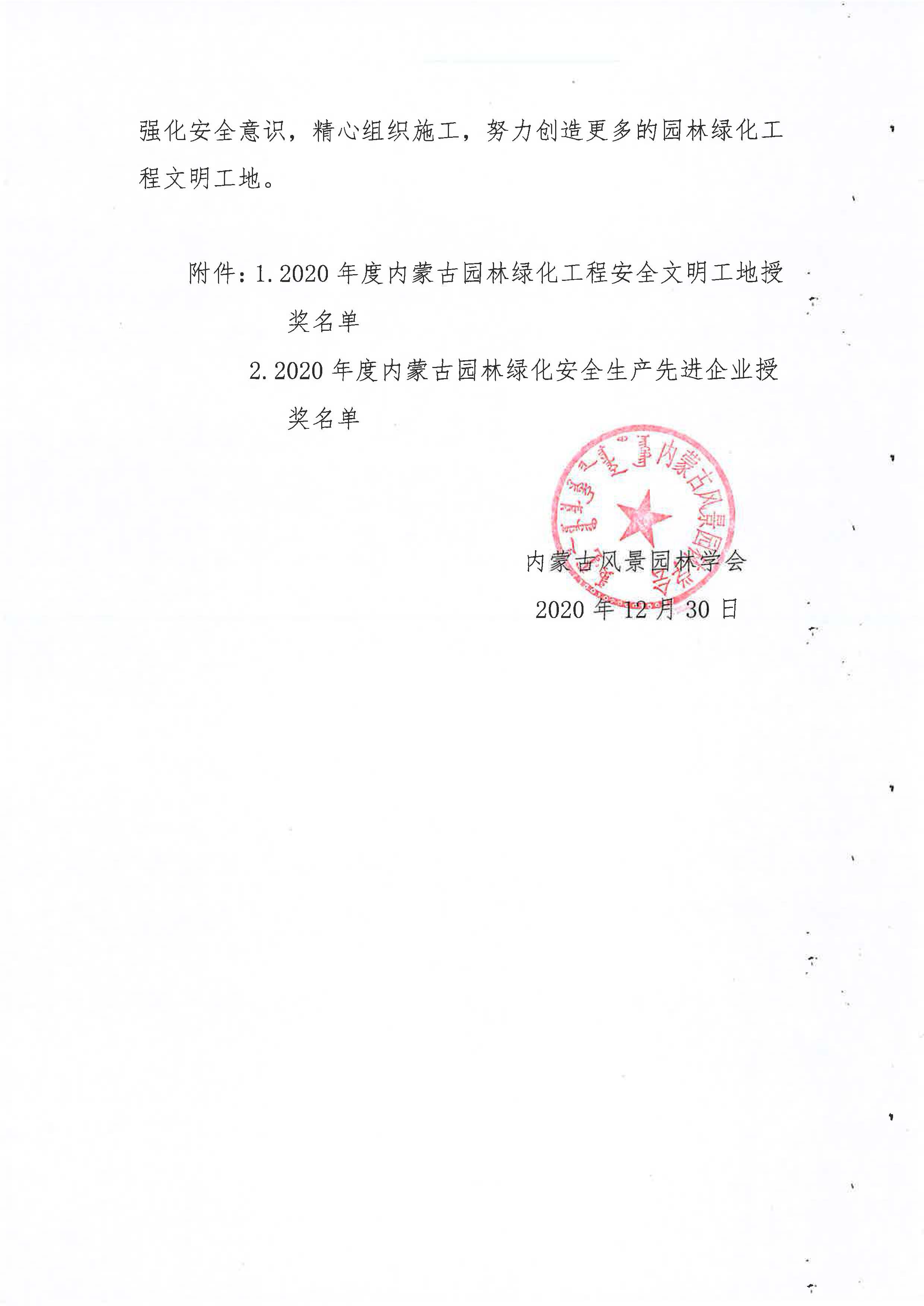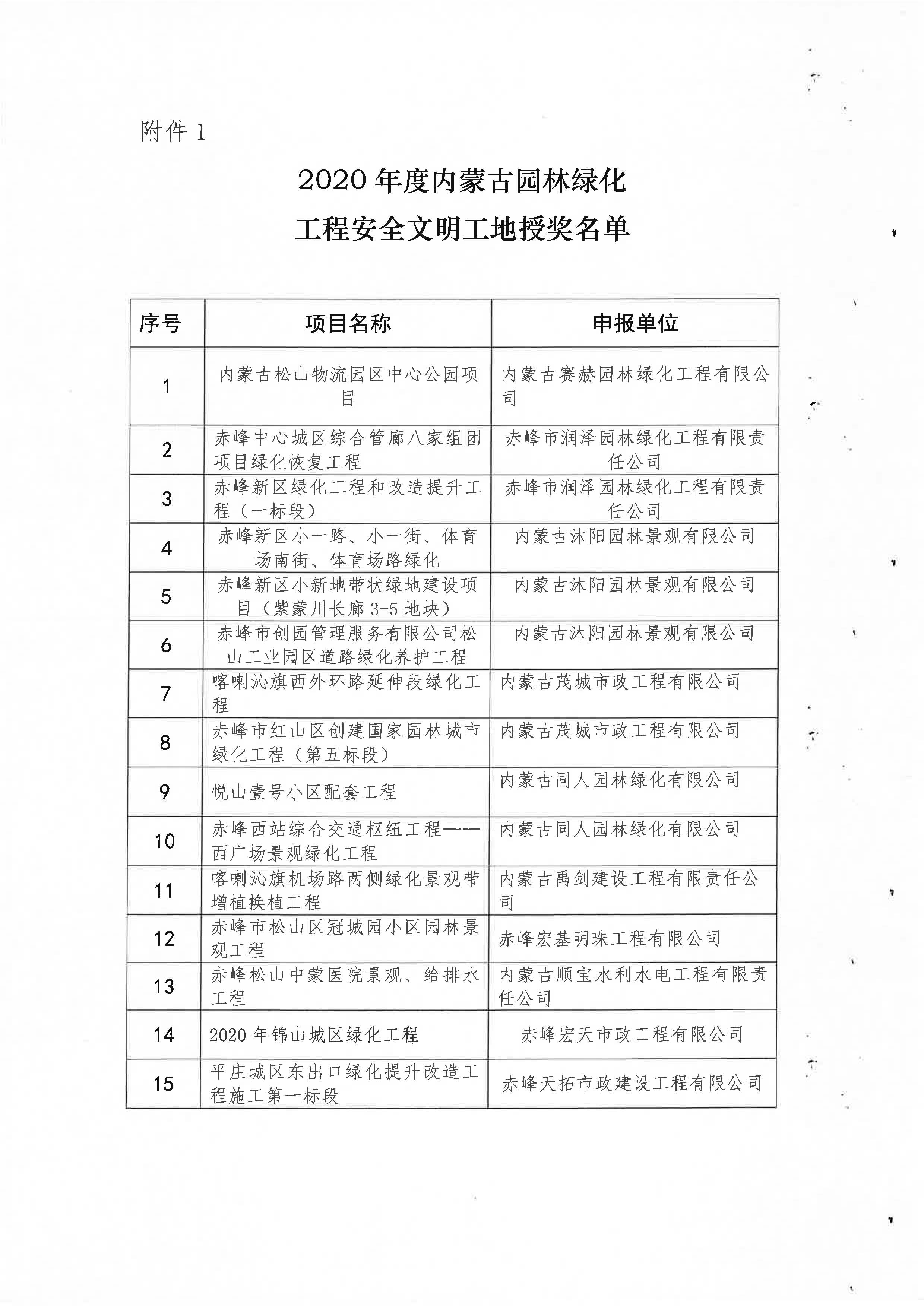 关于公布2020年度内蒙古自治区园林绿化工程安全文明工地获奖项目的通知.pdf